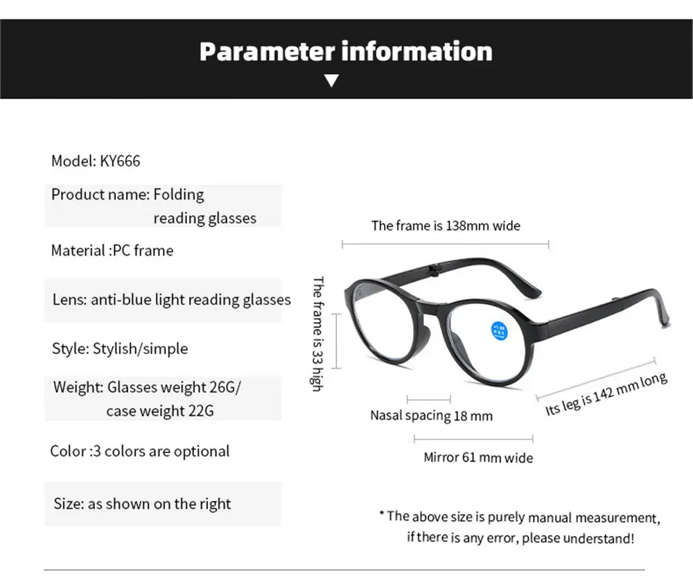 Portable Folding Reading Glasses Fashion Far-sighted Eyewear with Plastic Case Anti Blue Ultralight Diopter Eyeglasses 1.5 To +3.5