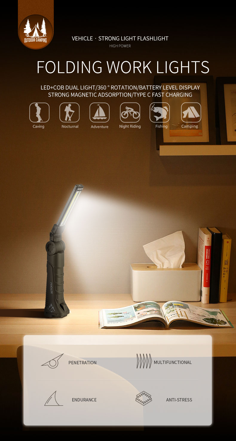 Portable Multi-Source Outdoor Work Light Rechargeable Car Repair Lamp with High Battery Life for Maintenance and Inspection