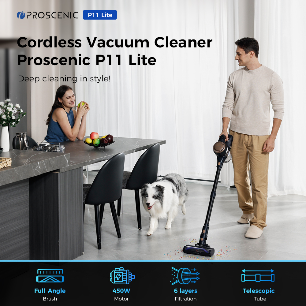 [EU Direct] Proscenic P11 Lite Cordless Vacuum Cleaner 40kPa Powerful Vacuum Cleaners for Home with LED Display,Up to 50 Mins Runtime Stick Vacuum,Lightweight Vacuum for Carpet,Hard Floor