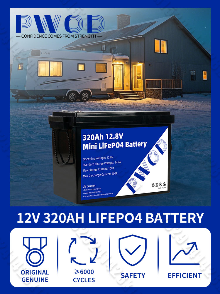 PWOD 12.8V 320Ah 3840Wh Mini LiFePO4 Battery Storage Box RV & Boat Lithium Battery Built-in BMS IP65 Protection