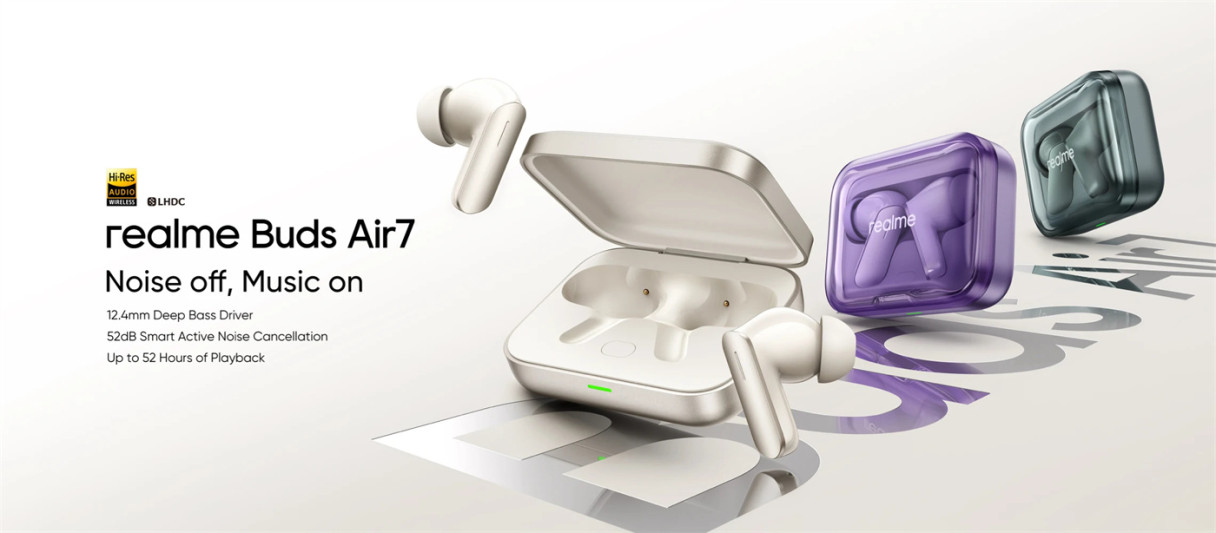 Realme Buds Air7 ANC Earbuds Wireless bluetooth 5.4 Earphone 52dB Depth Noise Cancelling AI Call Noise Reduction LHDC Hi-Res 12.4mm Deep Bass Driver 3D Surround Sound 45ms Low Delay 52H Playback Sports Headphones
