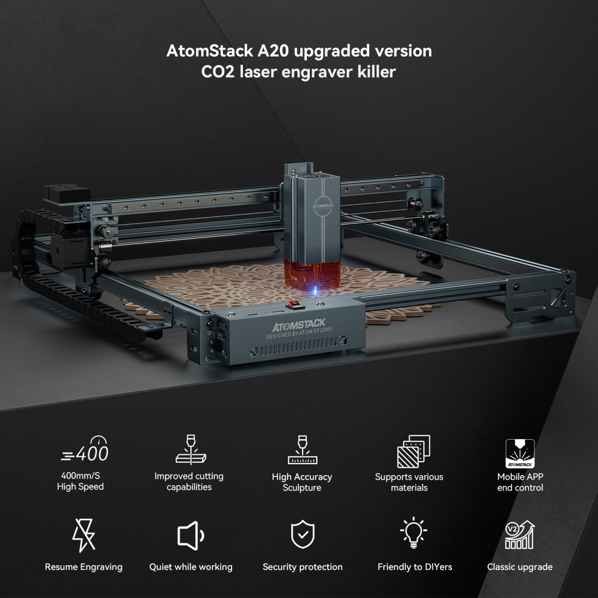 Refurbished AtomStack A20 PRO V2 20W Laser Engraver 24000mm/min Ultra Fast 120W High Power Laser Engraving Machine CNC Laser Cutter and Engraver Machine 400mm x 365mm Engraving Area for Metal Wood Leather