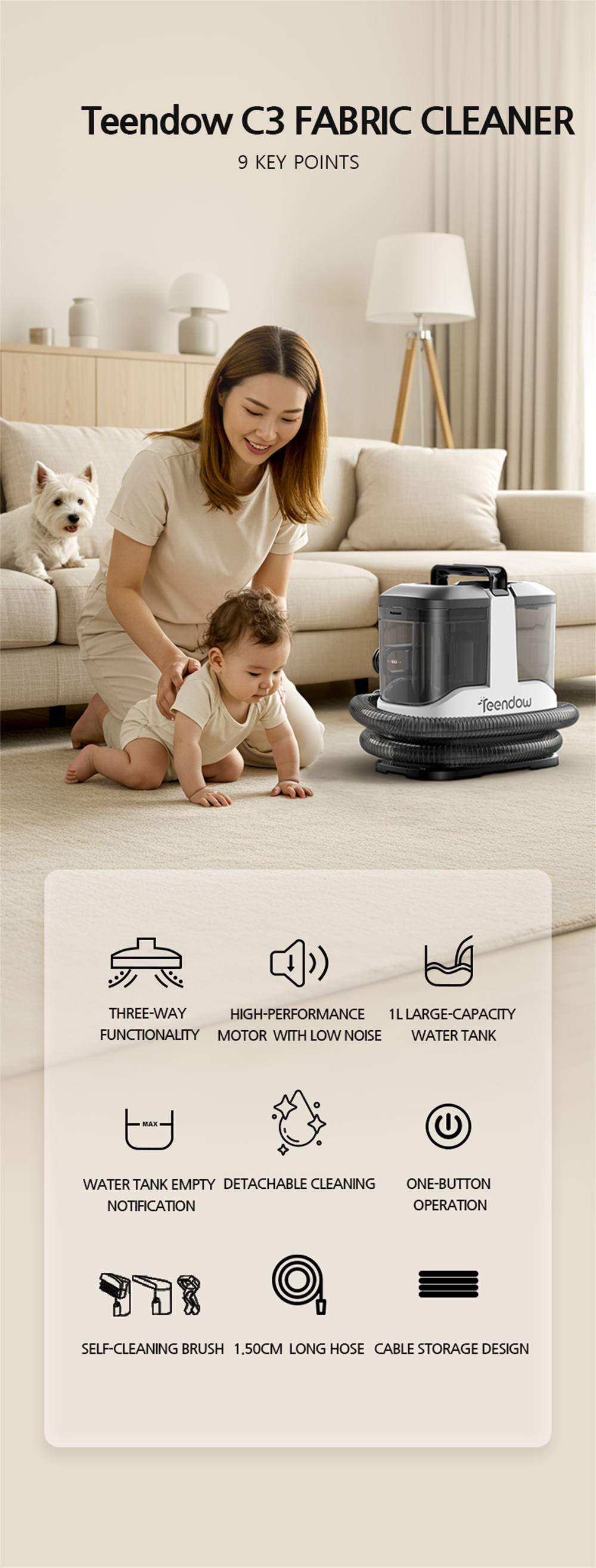 [EU Direct]Teendow C3 450W Portable Carpet Cleaner Vacuums 15kpa Spot Cleaner For Carpet And Sofa Pet Stain Remover with Dual Water Tank System