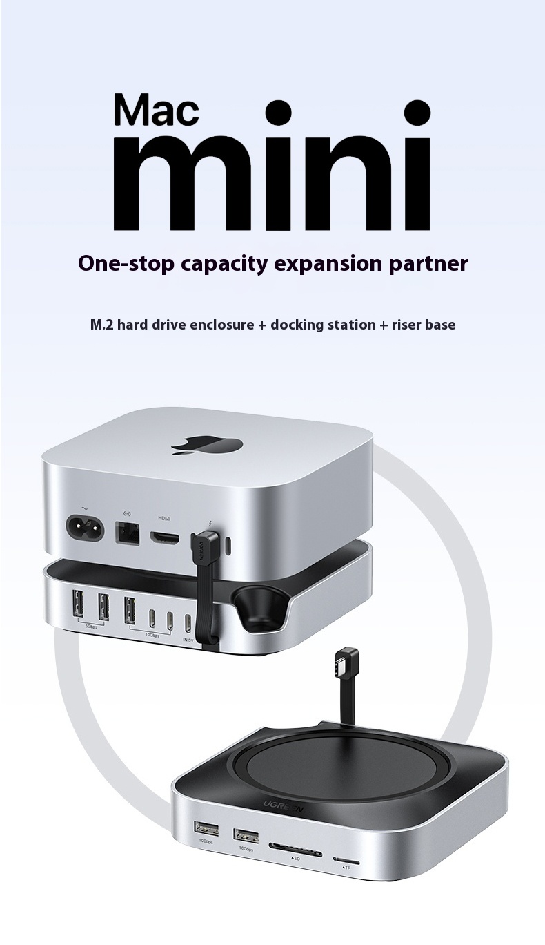 UGREEN CM841 for Mac Mini 11-in-1 Docking Station with M.2 NVMe SSD Slot 10Gbps USB-A Hub 3.5MM SD TF Card Reader Expansion Hub