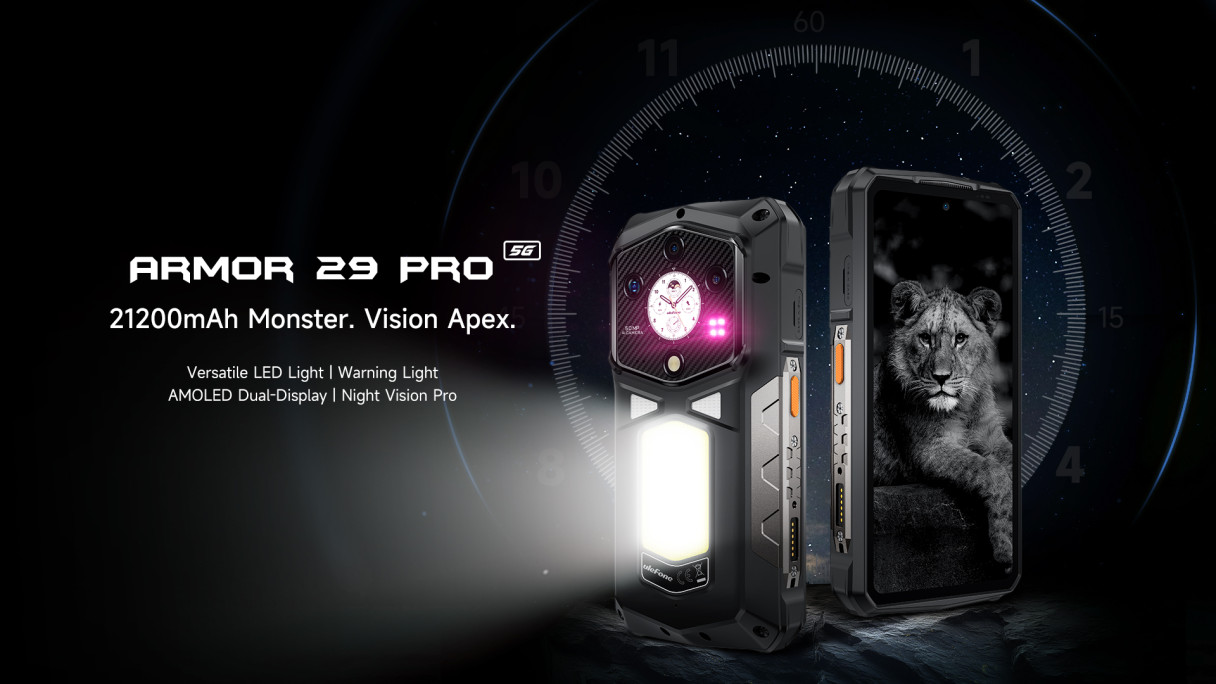 Ulefone Armor 29 Pro 5G AI AMOLED Dual Display 32GB 512GB 21200mAh 120W Fast Charge Versatile LED Light Warning Light 50MP Camera 64MP Night Vision Dimensity 7400 6.67 inch 120Hz Android 15 NFC IP68 IP69K Waterproof Rugged Smartphone