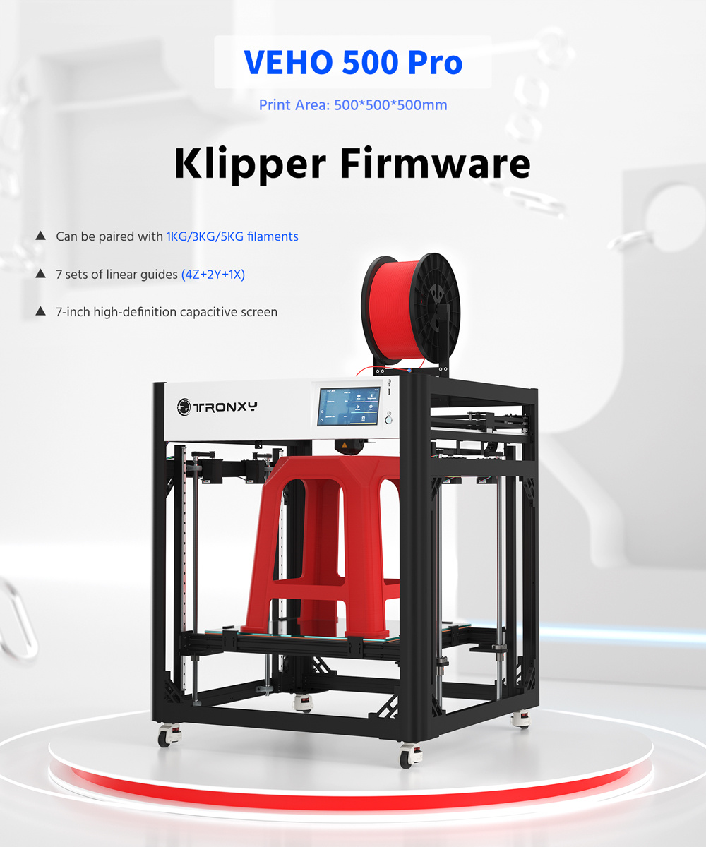 VEHO 500Pro 3D Printer Industrial Grade High Speed 300mm/s Large Build Volume 500x500x500mm Klipper Firmware High Precision Auto Leveling Commercial Use 3D Printer