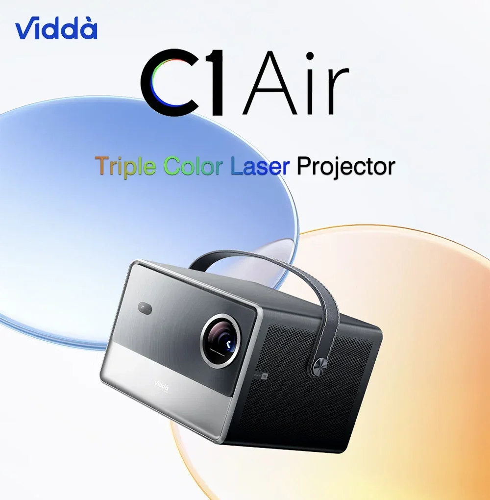 [EU Direct English Version]Vidda C1Air RGB Portable Triple Color Lase Projector 1080P 1000Ansi Lumens Android WIFI6 4+64GB JBL HIFI Speakers Video 3D Beamer Home Theater Outdoor With Free Gift Television Stick