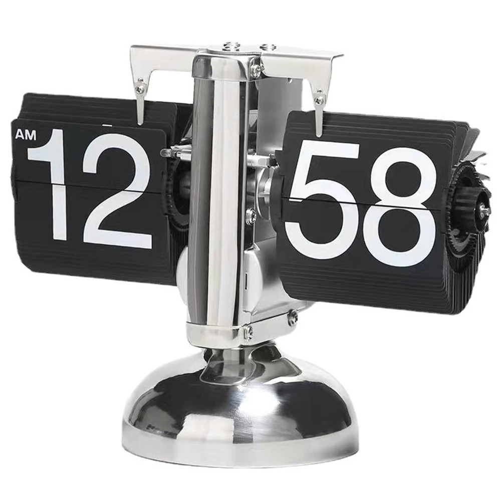 Vintage Flip Clock 12-Hour Automatic Flip Clock Retro Stainless Steel Desk Clock Large Time Display Clock for Living Room Bedroom Household