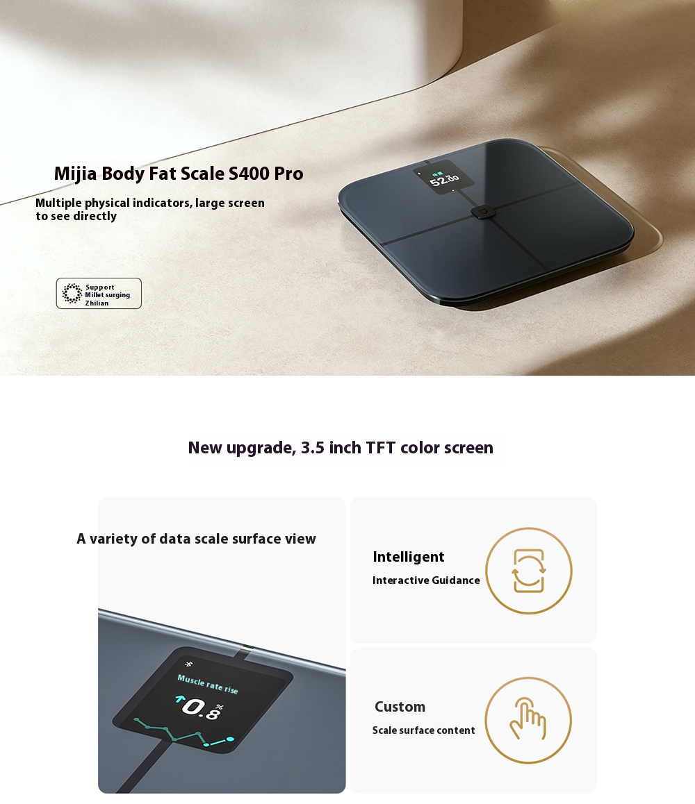 XIAOMI Mijia S400 Pro Smart Body Fat Scale 25 Metrics 3.5" TFT Screen Dual-Frequency BIA Bluetooth 5.1 High-Precision 0.1~150kg Range Works with MiHome APP