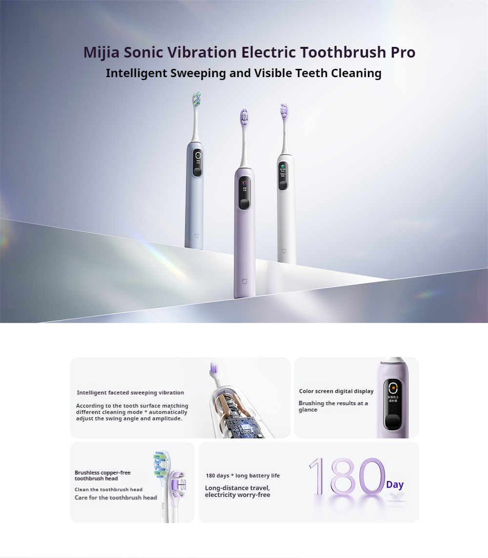 XIAOMI Oscillation Electric Toothbrush Pro 4 Cleaning Modes 180-Day Long Battery Life IPX8 Waterproof Color Screen Digital Display