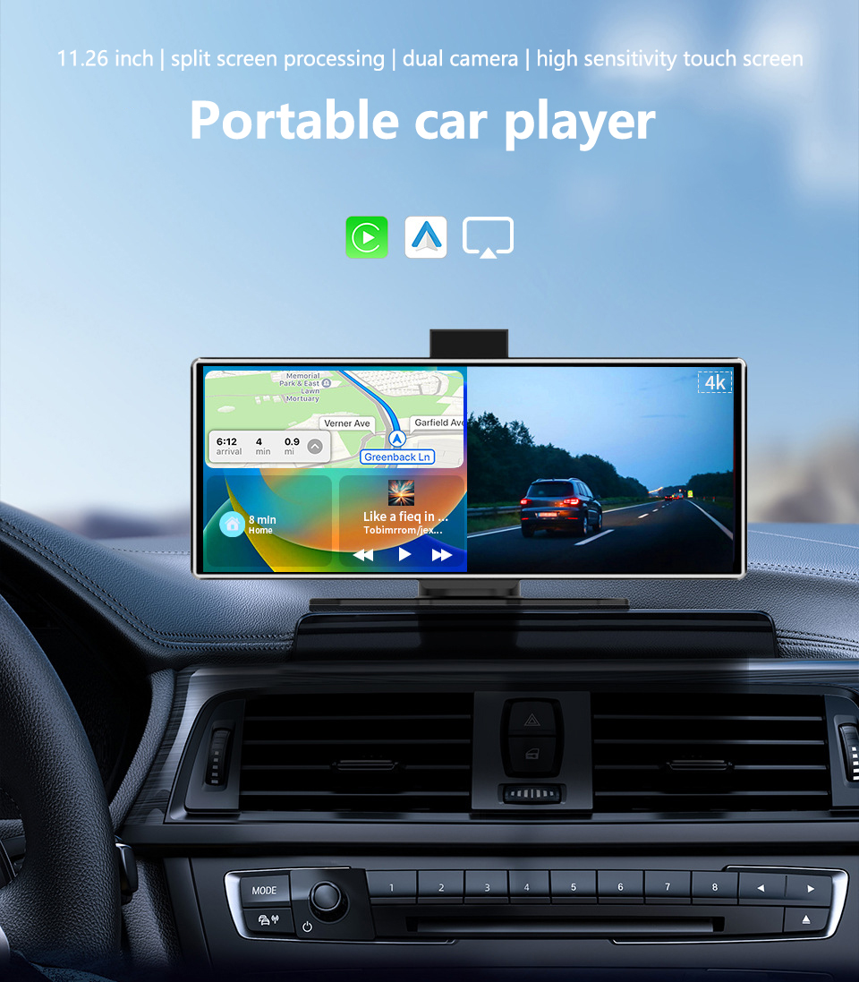 YUEHOO 11.26'' Carplay Car Stereo 4K Dash Cam HD Touchscreen Wireless Bluetooth MP5 Multimedia Player Driving Recorder With Front 1080P Rear Camer Dual Recording Lens GPS Navigation
